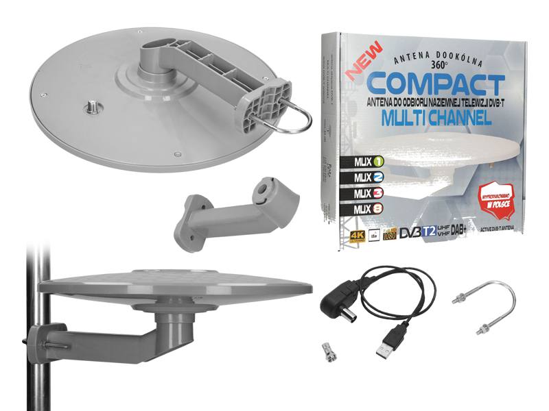 ANTENA ZEWNĘTRZNA DO CYFROWEJ TV NAZIEMNEJ DVB-T COMPACT USB SZARA DVBT68